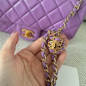 UNICORN ALERT AND RARITY!! 🦄💜✨ Mini rectangular quilted lambskin bag with crushed flap and pearls.