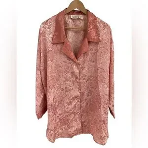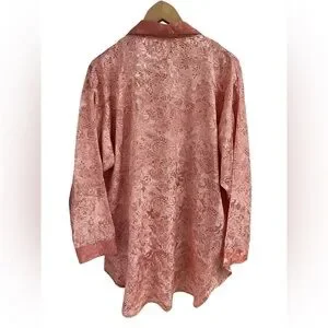VTG Victoria's Secret Gold Label Satin Floral Button-Down Pajama Sleep Shirt M/L