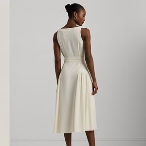 This elegant cream sundress by Lauren Ralph Lauren features a chic halter neckline and a sleeveless design. Its flowing midi length and classic style make it a versatile choice for both casual and resort wear.