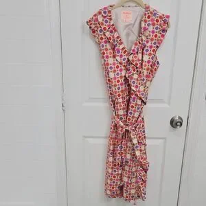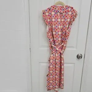 Gorgeous Kate Spade silk Aubrey wrap dress. Shell is a beautiful geo pattern of pink, red, olive, white and orange colors. Lined with Kate's signature laced hem. RARE & UNIQUE 🥰 Dress. NWOT. Never worn.