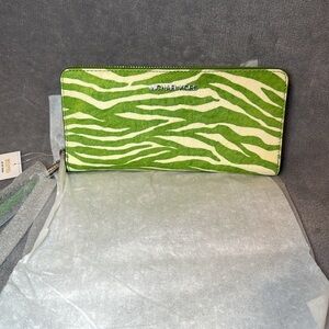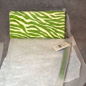 đź’šMICHAEL KORSđź’šJungle Green Jet Set Travel Zebra Print Calf Hair Cont Wallet/NWT
