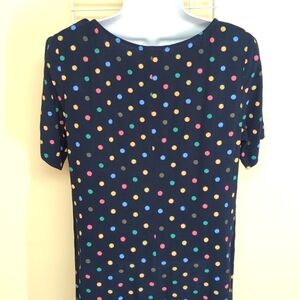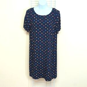 J. Jill Size 10 Petite Women's Navy Blue w/ Polka Dots Short Sleeve Shift Dress