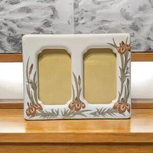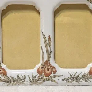 Vtg Picture Frame Porcelain Orchid Orange Floral Metallic Copper Accents Japan