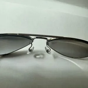 58mm with a silver frame and gray gradient lens are a timeless and stylish accessory for both men and women. Made in Italy with high-quality materials, these iconic sunglasses feature a classic aviator style with a metal frame and glass lenses that provide protection from the sun's glare. The sleek silver frame and gray gradient lens add a touch of sophistication to any outfit, making them a must-have for anyone looking to elevate their style. Size