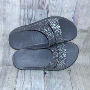 OOFOS OOahh Gray/Silver Splatter Slide Sandals Womens Size 11