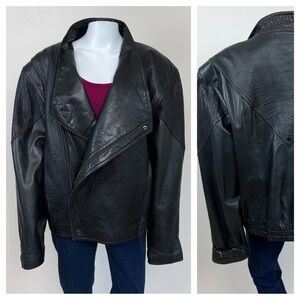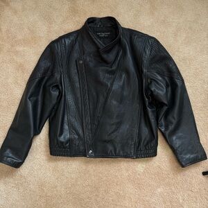 Marc Buchanan Pelle Pelle Oversized Textured Black Leather Moto Jacket Vintage