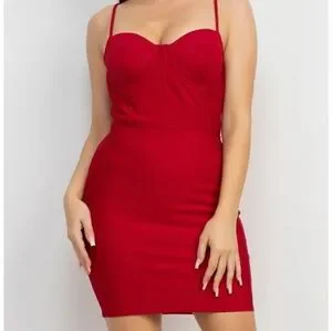 This vibrant red mini dress by Haute Monde features a flattering design that accentuates its bodycon fit. With a sweetheart neckline and spaghetti straps, it's perfect for a stylish cocktail night out. The sleek silhouette and short length ensure a standout look for any evening occasion.