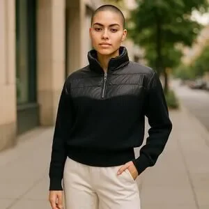Varley Mixed Media Long Sleeve Sweater Quarter Zip Pullover Sz M