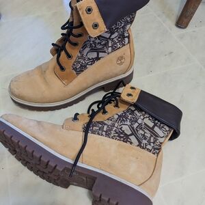 Timberland Tan and Brown Combat Boots with Paisley Accent