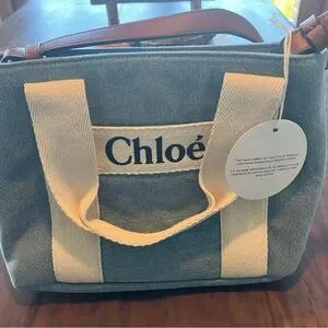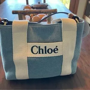 CHLOE Featuring a chic blue and cream DENIM design, it's perfect for any occasion. Crafted with attention to detail, this bag combines elegance and functionality.NEW WITH TAGS!