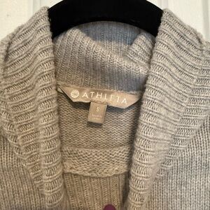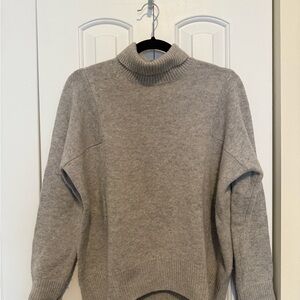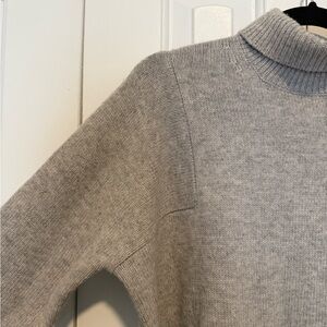 This Athleta sweater in a sophisticated gray hue features a cozy cowl neckline and ribbed detailing at the cuffs and hem. Its relaxed fit and soft knit material make it a perfect choice for both comfort and style, ideal for layering or wearing on its own.
