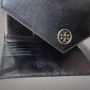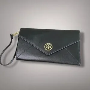 Like New TORY BURCH Black Saffiano Leather Robinson Envelope Wristlet Clutch