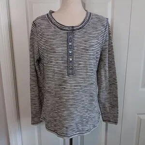Sundace Navy and White Striped Long Sleeve Women's Henley Shirt