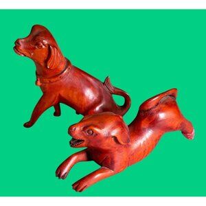 Vintage Boxwood Hand-Carved Japanese Netsuke Dogs - Sitting & Playful Poses