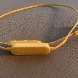 Bright yellow wireless earbuds with a sleek design. Perfect for music on the go. Please check for compatibility.