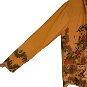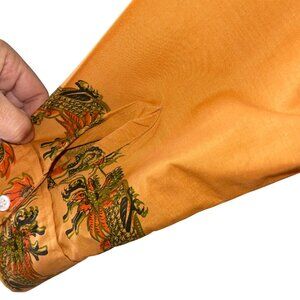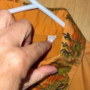 Vintage 1970s Mens Shirt Size Large Orange Dragon Button Down Long Sleeve