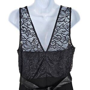 Womens XL Elegant Black Lace Cocktail Party Dress Satin Bow & Mesh Skirt A-Line