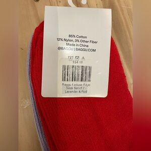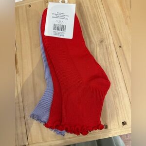 Baggu 2 lettuce edge ribbed socks NWT red and lavender
