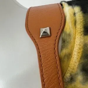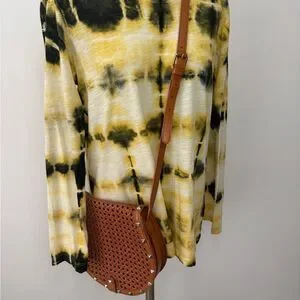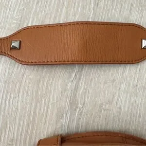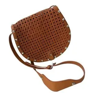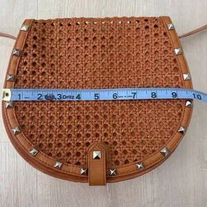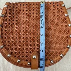 Rebecca Minkoff Skylar Woven Leather Crossbody Saddle Bag in Tan. Tan genuine leather with silver studs and magnetic flap closure. In great condition, just very minor wear to the leather and mark on back. See pictures for wear.