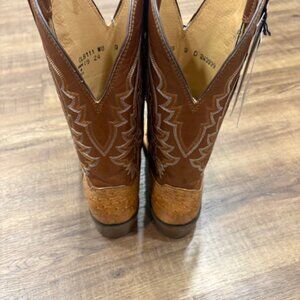 Size 9 Lucchese Tan and Barnwood Full Quill Ostrich Cowboy Boots