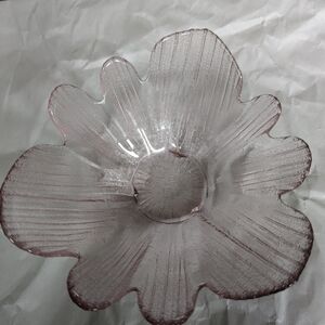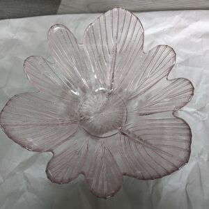 Add a touch of elegance to your home with this beautiful pink glass flower bowl. Perfect for any decor style.