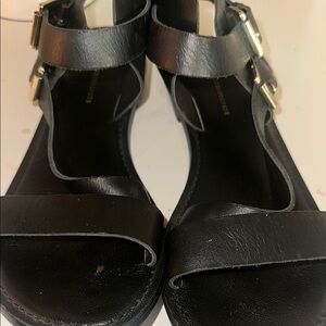 Anthropologie Black Leather Sandals with Ankle Strap Size 10