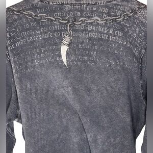 Affliction Rare Skull Thermal Waffle Knit Shirt Navy Mens Medium Y2K Grunge MMA Distressed Studded Cross