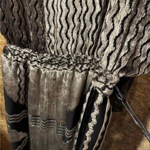 This elegant dress features a sophisticated black and silver color palette, perfect for special occasions, work, or cocktail occasions. The long dolman sleeves and V-neckline add a touch of modern style to the classic sheath silhouette. Crafted from a luxurious velvet fabric, this dress offers both comfort and elegance. Pictures don’t do it justice. Just beautiful! UK 10 US 8 New condition