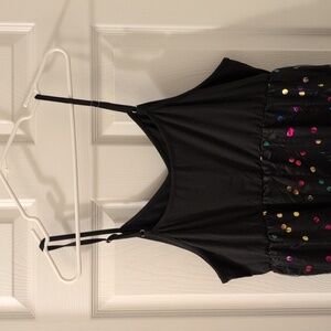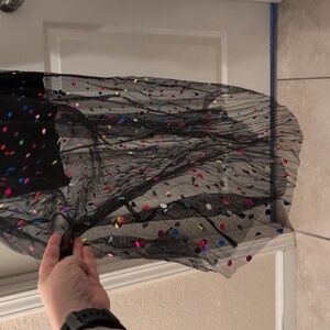 This sexy and fun dress has a solid black lining though high, and a sparkly sequin mesh layer ankle length. Perfect for parties and festivals. The empire waist is super flattering and the straps are adjustable for the perfect fit! Brand new in bag and never worn.