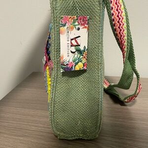America & Beyond Embroidered Rainbow Evil Eye Design Green Tote Handbag