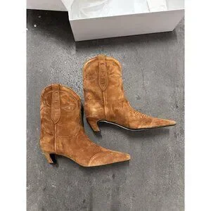 KHAITE Dallas Ankle Boots Caramel Brown Suede 38 NIB $1200