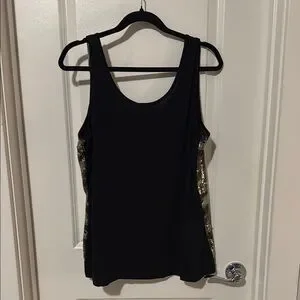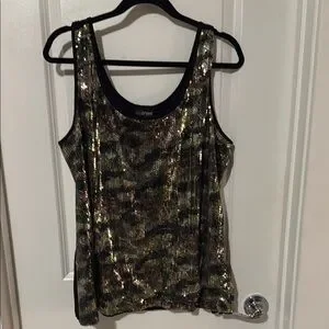Lane Bryant Black Gold and Green Camo Print Sequin Tank Top