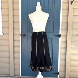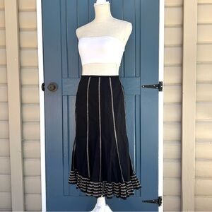 Vintage Nine West Black Red and White Stripes Midi A-Line Skirt Women Size 10