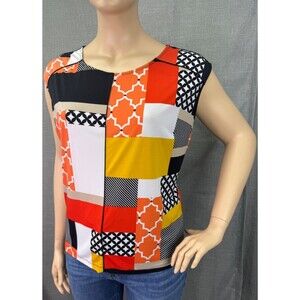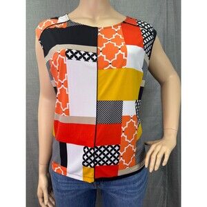 Worthington Women's Size 2X Sleeveless Patchwork Top Orange White Black Yellow