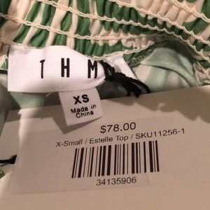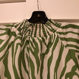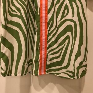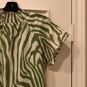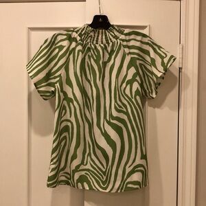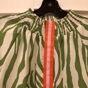 (NWT) THML Short Sleeve Green/Ivory Zebra Stripe Top with Orange/Pink Stripe Down the Center - Elastic Neck
