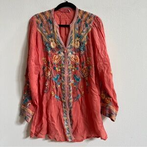 Johnny Was Embroidered Top Medium ORANGE