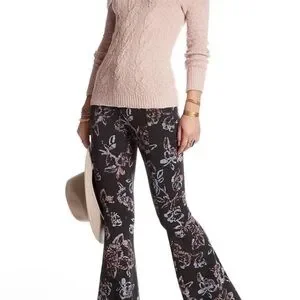 Free People Born To Be Wild Gray Floral Flare Pants