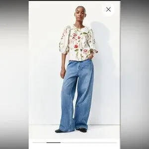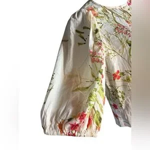 H&M women’s linen blend white floral button down blouse sz XS preloved in excellent condition