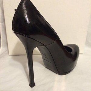 Elevate your style with these elegant black heels from Yves Saint Laurent. Perfect for any occasion, these shoes offer both sophistication and comfort.