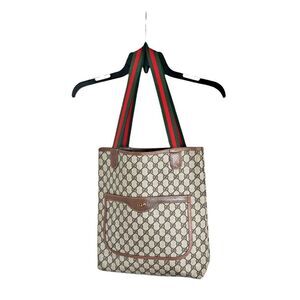 GUCCI GG Sherry Shoulder Tote Bag PVC Leather Brown