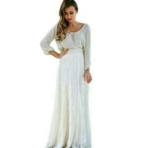 White Lace Maxi Long Skirt NEW Beach Wedding Bride Bachelorette Boho Summer M