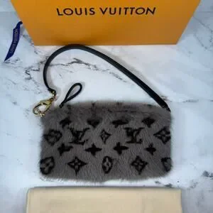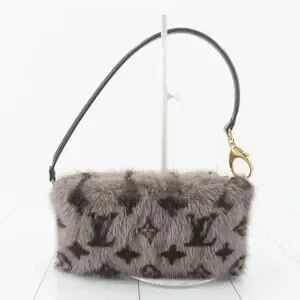 • Named after the model/actress Milla Jovovich, this stunniny little pochette is made from gorgeous mink fur with the classic LV monogram pattern. The bag has a black leather handle and goldtone hardware, and opens to a brown leather interior.