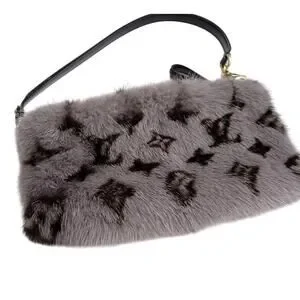 Louis Vuitton Mink Fur Bag Monogram Milla Vision MM Gray Vintage Rare Shoulder
