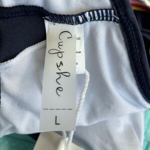 CUPSHE Navy Keyhole Crochet Trim Halter Bi…