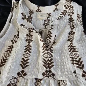 Sterling & Stitch Womens Western Geometric White Brown Ruffle Tank Top Sz Small