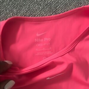 Bold pink Nike Pro set with sleeveless top and shorts. Ideal for active wear.