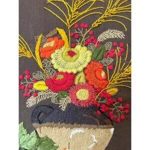 Vintage 70's Crewel Floral Vase Still Life Columbia Minerva 18"x22" Retro