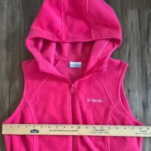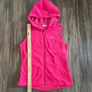 Bold pink hooded vest by Columbia. Ideal for casual wear. This item is very nice and like new condition.