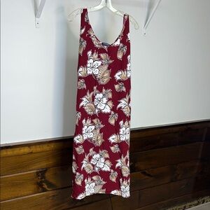 Embrace elegance with this sleeveless floral dress. Featuring a vibrant red base adorned with white floral patterns, this dress is perfect for any occasion. Enjoy a comfortable fit and stylish look. Comes from a smoke free environment.