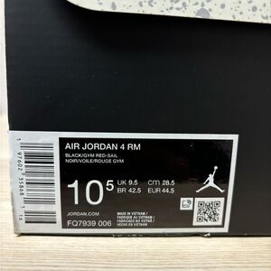 Stylish Jordan Air 4 RM in black/gym red/sail/coconut milk Perfect for any sneaker enthusiast.